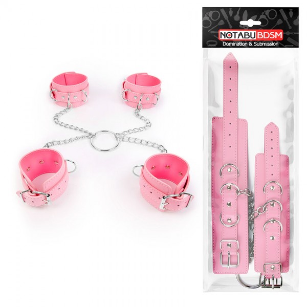 Наручники + оковы на металлических цепях "Notabu" розовые, экокожа